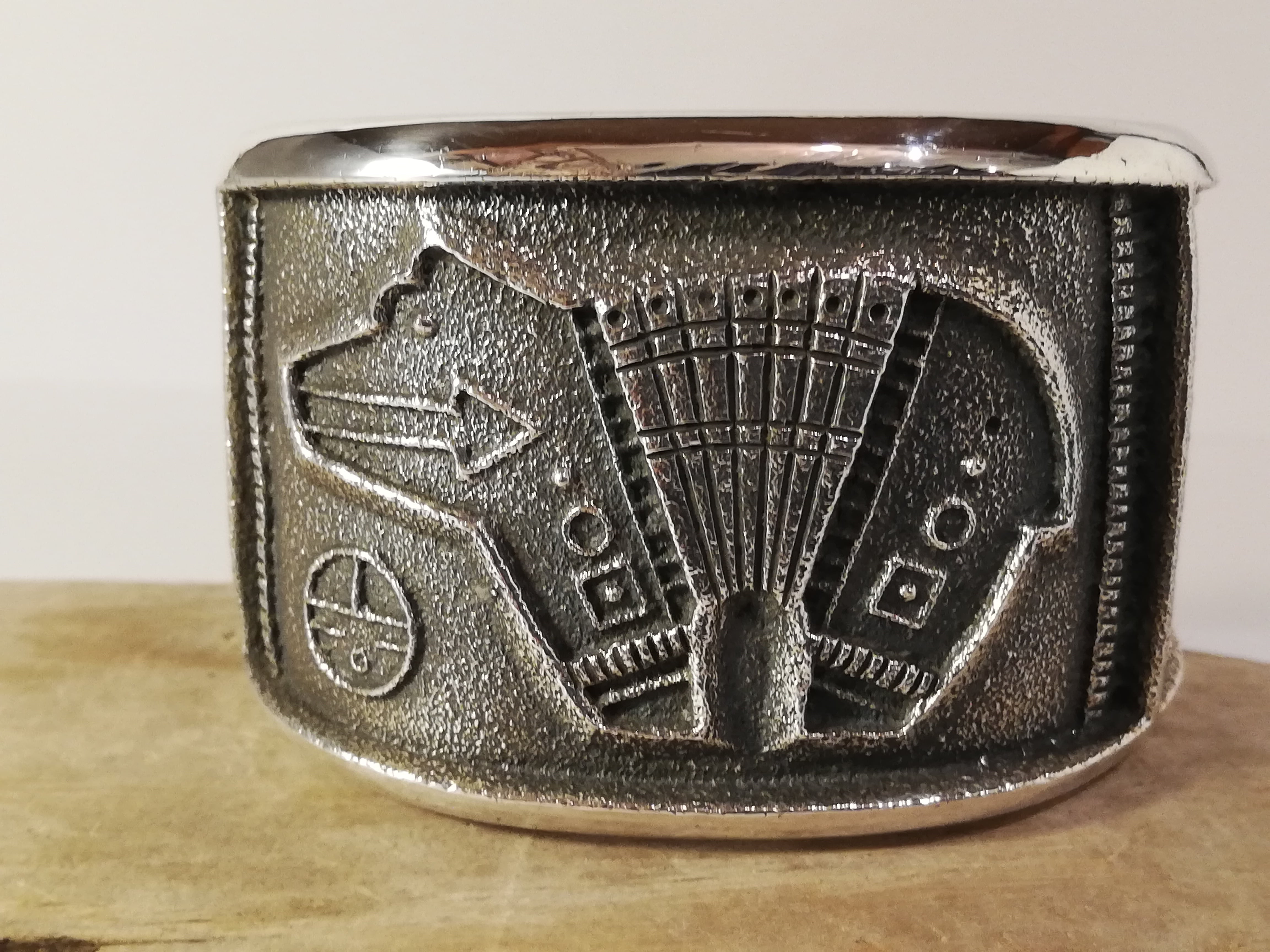 ハリソンジムさんは数々のジュエリー賞を獲得している人気の作家さんです。ナバホ族の伝統的な技法・スタンプワークはもちろんトゥファキャストやインレイなどの銀細工も得意です。
