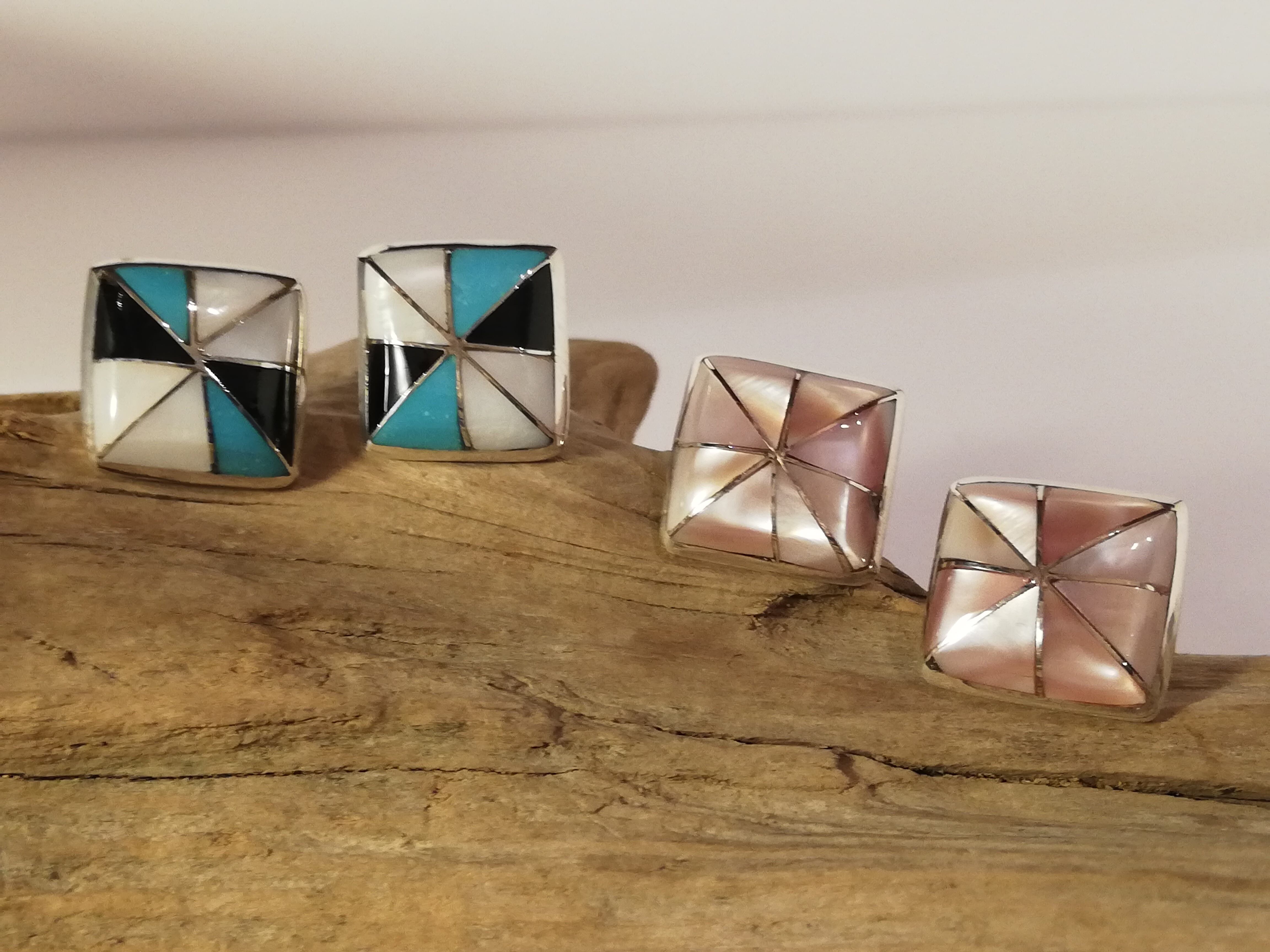 ネイティブアメリカンのズニ族の得意とするインレイワークで作られています。